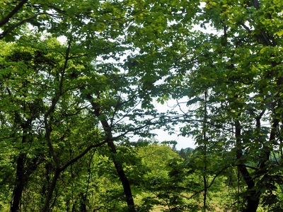 くねくねした狭い道で運転は大変ですが、緑のカーテンの中を通れます。